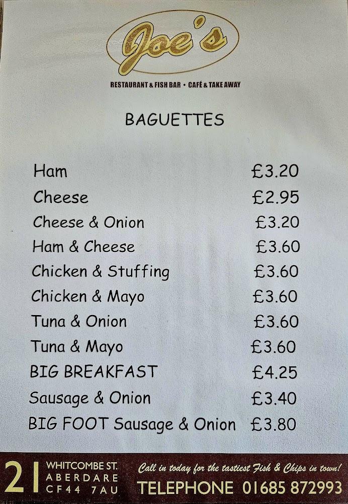 Located at 21 Whitcombe Street in Aberdare, Joe's Fish & Chips Bar embodies the spirit of traditional British fast food. The vibrant atmosphere welcomes both solo diners and families, reflecting Aberdare's community-oriented vibe. The eatery thrives on delivering fresh and delicious meals that evoke nostalgia for simpler times, making it a favorite spot for many. Customers rave about the cleanliness of the premises and the warm, friendly service provided by the staff. Danilo, the owner, is committed to upholding high standards, even crafting delicious egg-free rissoles for those with dietary restrictions. With a wheelchair-accessible entrance and seating, the bar ensures that everyone can enjoy its offerings. Parking is hassle-free, with free on-street options available nearby, making it easy to pop in whether you're grabbing a quick bite or settling in for an extended meal. The takeaway's operating hours, catering to various dining needs, stand as a testament to its dedication to serving the Aberdare community.